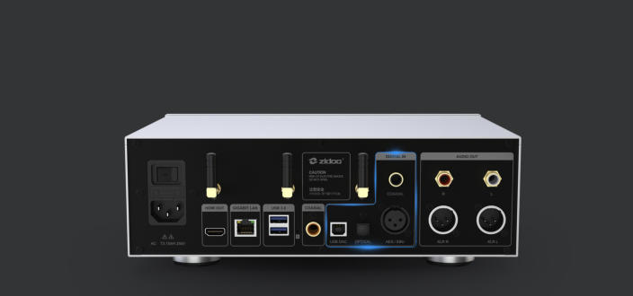Plusieurs ports, y compris USB DAC, entrée optique, coaxiale et AES/EBU